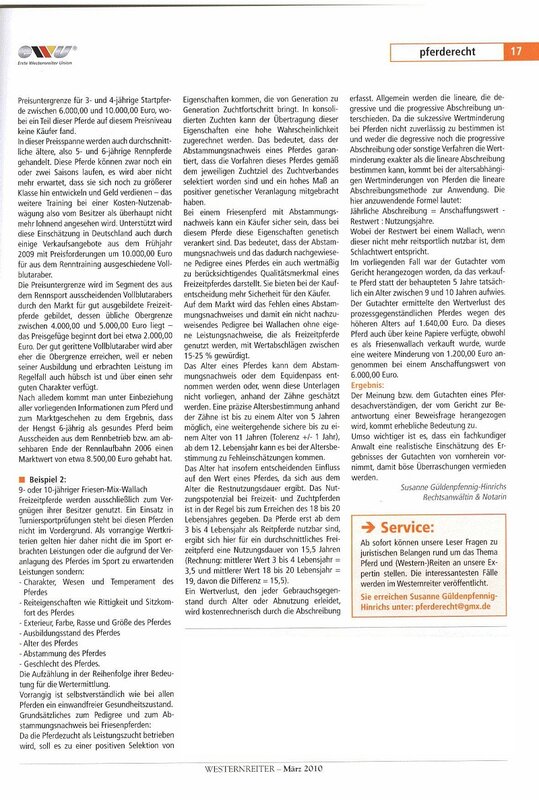 12.2008 Urteil zum Pferdeverkaufsrecht 11.2008 Vorfahrt für den Pfau 09.2008 Wer ist Pferdehalter 08.2008 Der Pferdeeinstellvertrag 07.2008 Tierarzthaftung 06.2008 Hund kontra Pferd 05.2008 Pferdepensionsvertrag 04.2008 Pferdeverkauf Mangel 03.2008 Eigentumsklarheiten 02.2008 Der Pferde-Leasingvertrag 01.2008 Pferdekauf/-verkauf 01.2008 Vorstellung Westernreiter