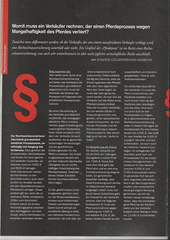 12.2013 Aufklärungspflicht eines Verkäufers 09.2013 Der Bedeckungsvertrag 08.2013 Haftungsrisiko Pferdepensionsvertrag 06.2013 Pferdetausch in Dubai mit Hindernissen 04.2013 Pferdeprozess wegen Mangelhaftigkeit
