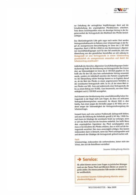 12.2008 Urteil zum Pferdeverkaufsrecht 11.2008 Vorfahrt für den Pfau 09.2008 Wer ist Pferdehalter 08.2008 Der Pferdeeinstellvertrag 07.2008 Tierarzthaftung 06.2008 Hund kontra Pferd 05.2008 Pferdepensionsvertrag 04.2008 Pferdeverkauf Mangel 03.2008 Eigentumsklarheiten 02.2008 Der Pferde-Leasingvertrag 01.2008 Pferdekauf/-verkauf 01.2008 Vorstellung Westernreiter